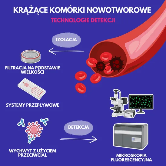 Znajdziesz tu materiały i grafiki popularnonaukowe, które w prosty sposób wyjaśniają złożone procesy biologiczne związane z powstawaniem i leczeniem nowotworów. Szczególną uwagę poświęcamy krążącym komórkom nowotworowym (ang. circulating tumor cells, CTCs) i ich roli w diagnostyce oraz badaniach nad przerzutowaniem.
